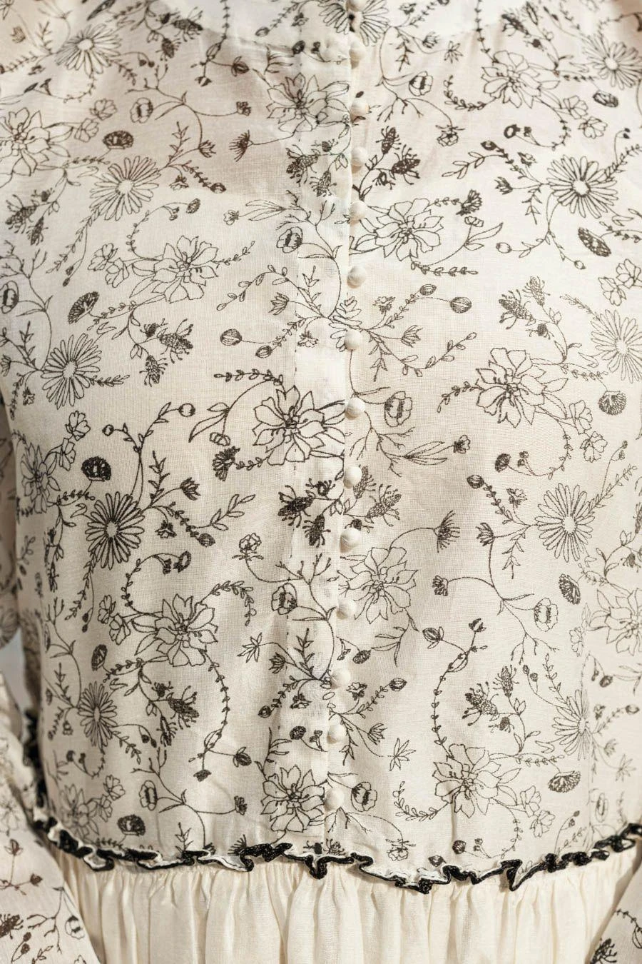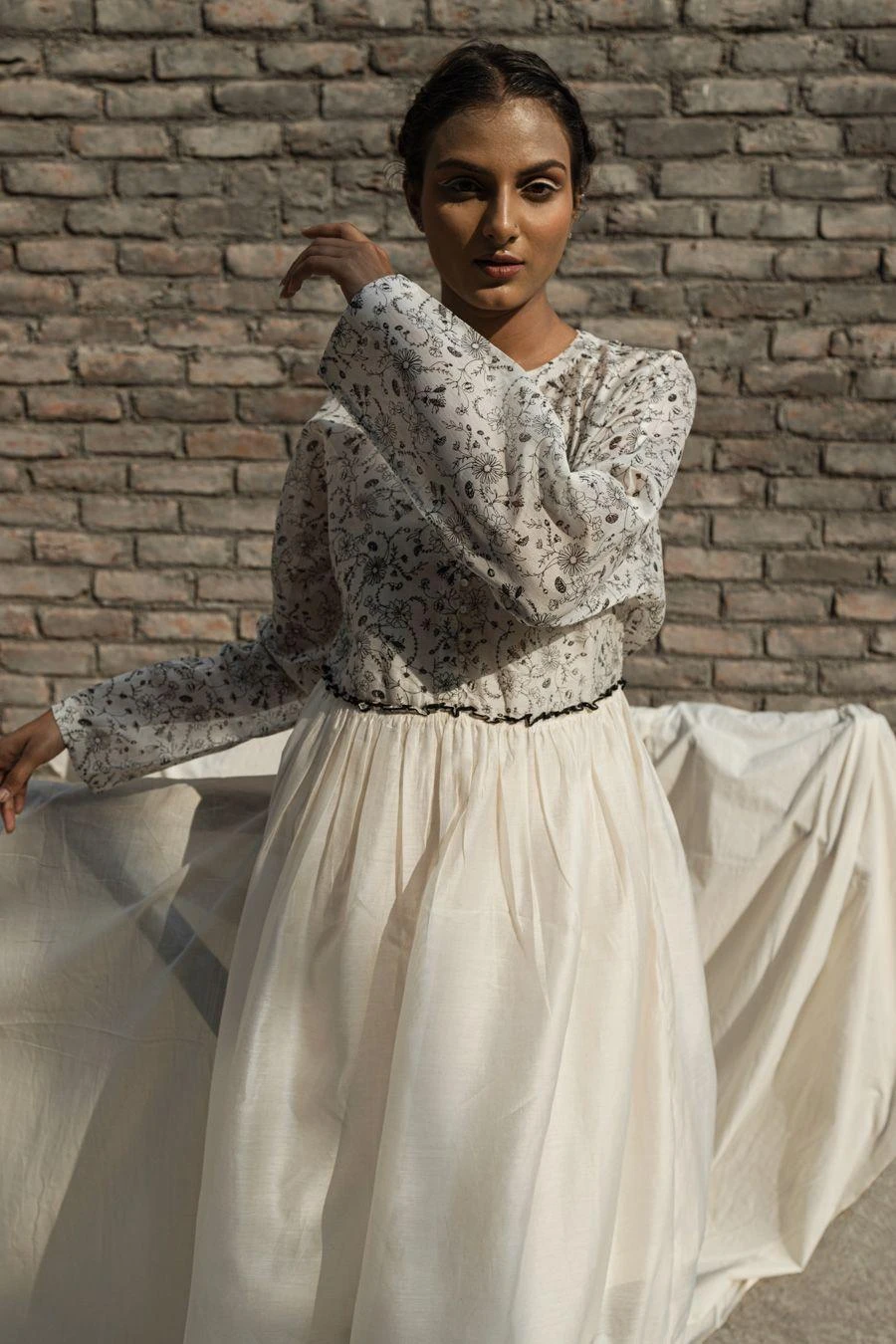 Look effortlessly stylish with this dress. The dolman sleeves are crafted with intricate screen printing by hand, lending them a statement quality that perfectly complements the gathered waist & adds a touch of artisanal charm to the dress.