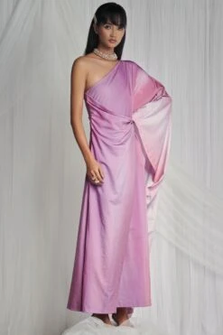 Embrace the unconventional glamour in this navy blue gown. The skirt is engineered in fluid chiffon fabric while the bodice is made in mesh fabric. This gown is accentuated with a cascading drape down the waist. Style it for a cocktail night.