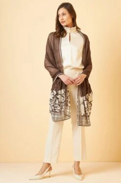 Wrap yourself in the elegance of soft organza satin and fine prints with this Leaf Noor Scarf. Its flowy design adds a playful charm to your ensemble.