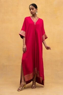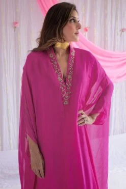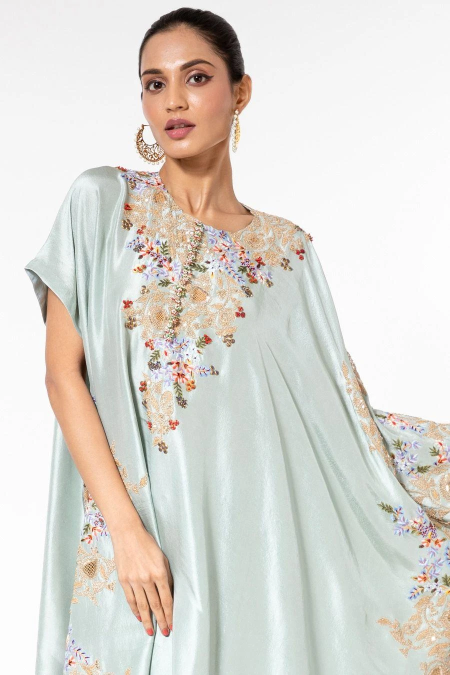 Contemporarize your ethnic closet with this super chic & playful kaftan set. It features an embroidered kaftan, paired with a voluminous skirt. Adorn a pair of statement earrings to complete the look.
