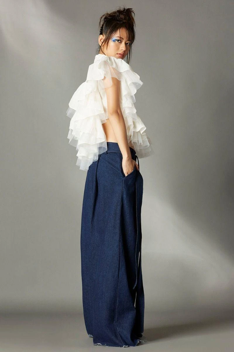 Step into sophistication with these pleated trousers, complete with a self-belt for a chic finishing touch. Pair them with a coordinating shirt from the collection to complete the set.
