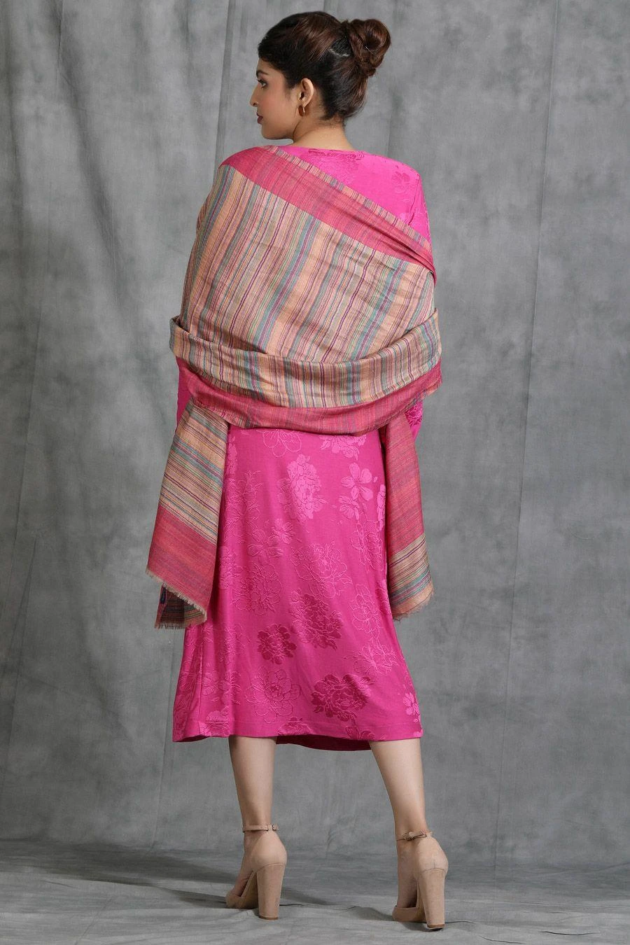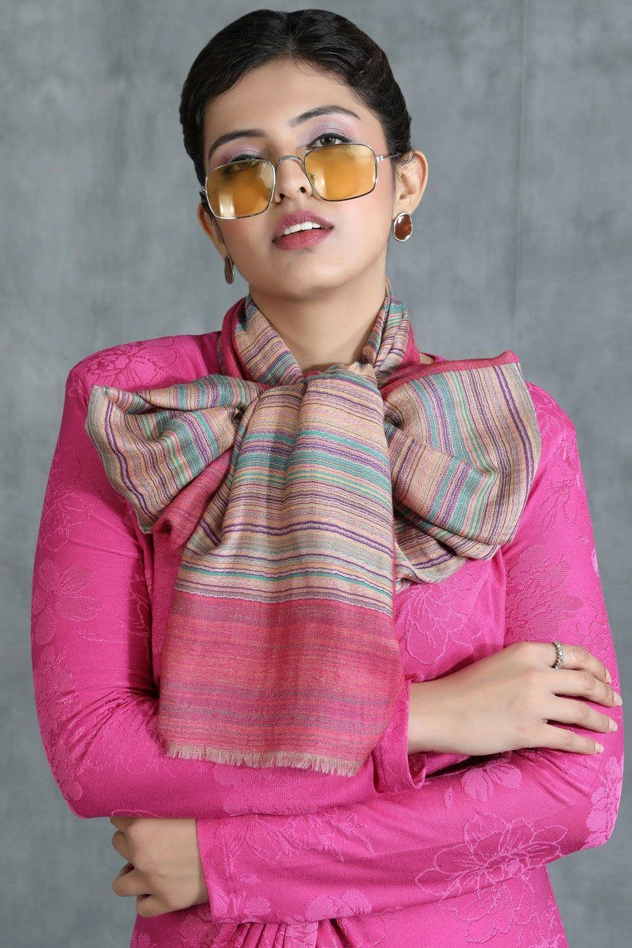 Add an edge to your look this winter with this handwoven pashmina wool reversible stole. This lightweight stole made from the smoothest fabric can be layered over a sari, kurta or sherwani.