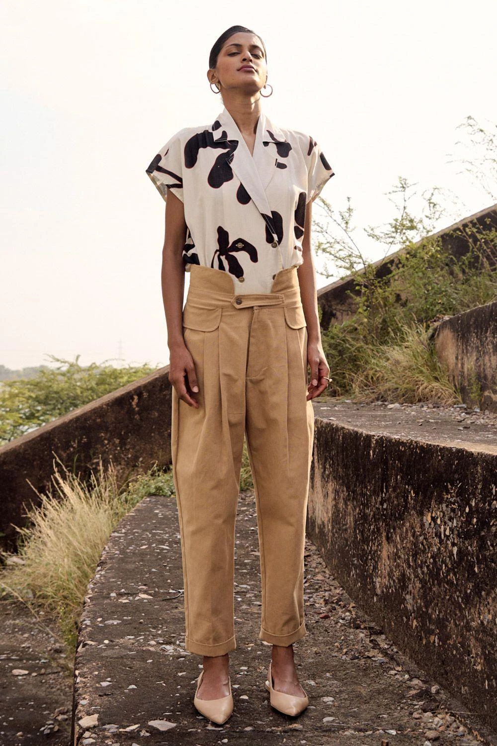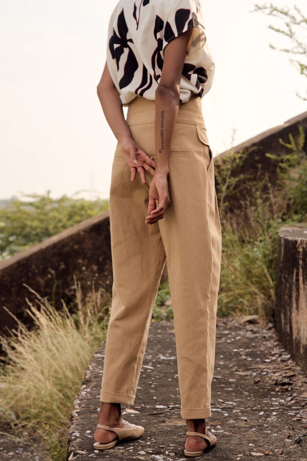 Elevate your wardrobe with these beige oxford trousers. Impeccably tailored with front pleat detailing and a front button opening, these trousers exude timeless sophistication.