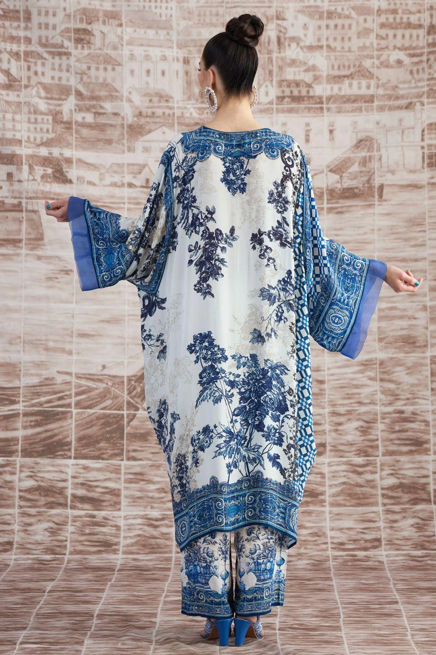 The perfect amalgamation of style and comfort, this kaftan works across occasions. Crafted in silk, this V-neck kaftan with a side slit features a floral print all over. Style it with coordinating pants from the collection to complete the set.