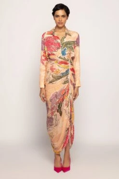 Elevate your wardrobe with this Periwinkle Micro Pleated Skirt. Crafted with meticulous detail & featuring zipper detailing, it embodies timeless elegance. Pair it with the Periwinkle Bandhani Batwing Shirt from the collection to complete the set.