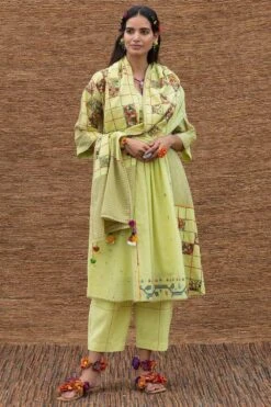 Take your festive looks a notch higher with this very opulent antique gold stole. It is woven in handloom tissue and detailed with minimal sequin handwork.
