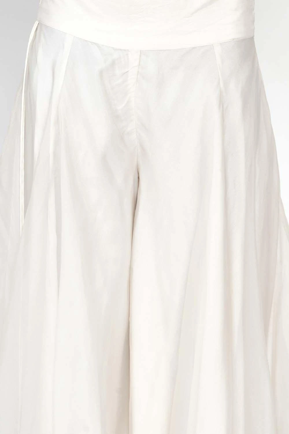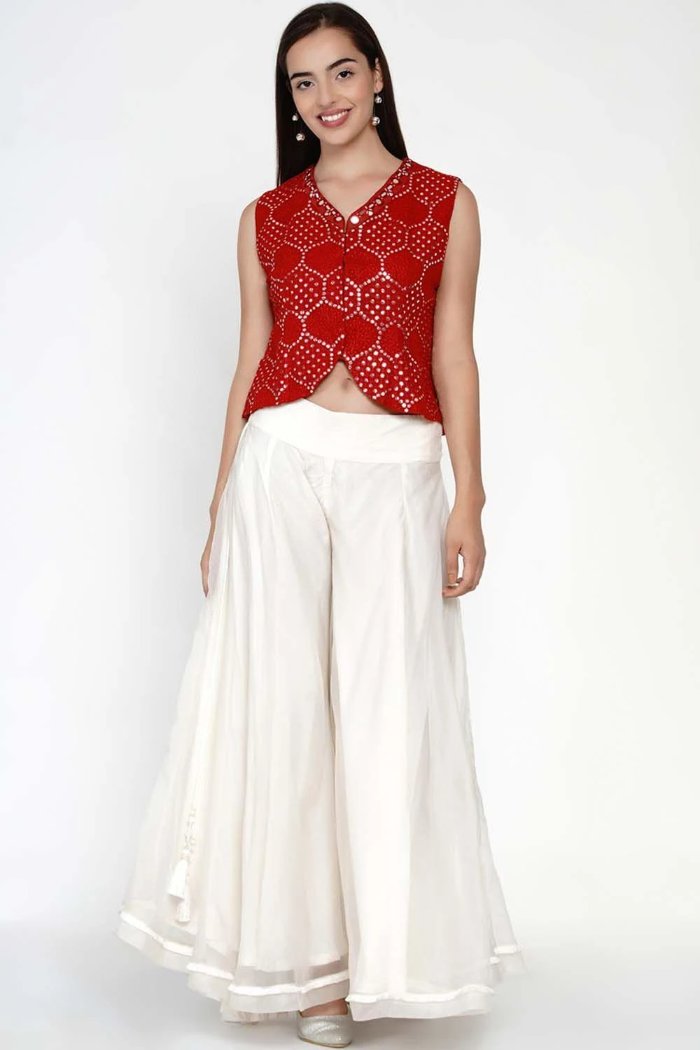 These asymmetrical organza white pants will add elegance to your look. It is enhanced with mirror & beadwork. Style it with a short kurta and statement earrings.